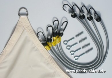Befestigung über die Ecken Zubehör Konkav-SegelTeleskopmaste, Spanngurte, Zugfedern, Wandanker Balkonverkleidungmit Metallösen, nach Maß